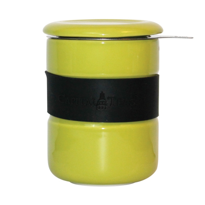 This self-contained brewing and drinking container is both dishwasher-safe and microwavable, making it convenient for on-the-go tea lovers. The lead-free high-fired ceramic lid doubles as an infuser holder, and the cup itself is made of lead-free high-fired ceramic and silicone for durability and safety.